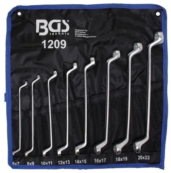 Juego de llaves acodadas de doble estrella | 6x7-20x22 mm | 8 piezas